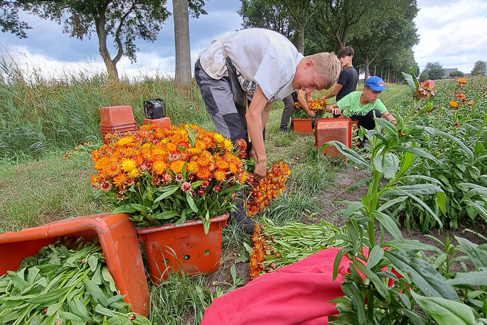 We verwachten de drukste periode van begin juli tot eind augustus. Hierbij zijn we echter afhankelijk van het weer en de groei van de bloemen. Hierdoor maken wij kort van te voren een planning per week. Als vakantiewerker help je ons met het oogsten van de bloemen. We hebben sikkelbloemen en snijbloemen.